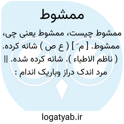 ممشوط. [ م َ ] ( ع ص ) شانه کرده. ( ناظم الاطباء ). شانه کرده شده. || مرد اندک دراز وباریک اندام: رجل ممشوط؛ مردی که در وی درازی و نازکی و باریکی باشد. ( از اقرب الموارد ). || شتر داغ کرده به داغ مشط. ( از منتهی الارب ) ( ناظم الاطباء ) ( آنندراج ): بعیر ممشوط؛ شتری که با داغ مشط ( نوعی داغ ْ شتران را ) داغ شده باشد. ( از اقرب الموارد ).