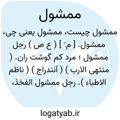 ممشول. [ م َ ] ( ع ص ) رجل ممشول؛ مرد کم گوشت ران. ( منتهی الارب ) ( آنندراج ) ( ناظم الاطباء ). رجل ممشول الفخذ، اندک گوشت. ( از اقرب الموارد ).