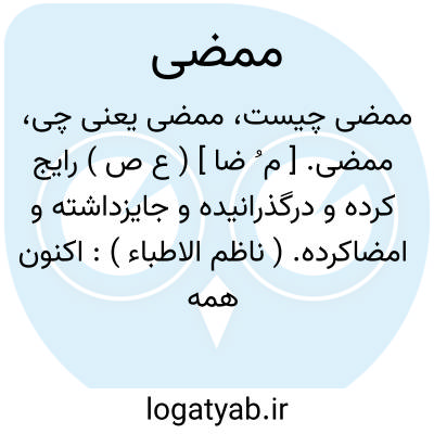 ممضی. [ م ُ ضا ] ( ع ص ) رایج کرده و درگذرانیده و جایزداشته و امضاکرده. ( ناظم الاطباء ): اکنون همه دانستند که قضاء حق واقع و حکم الهی ممضی. ( ترجمه تاریخ یمینی ص 454 ). بنام ایشان مجری و ممضی. ( ترجمه محاسن اصفهان ص 121 ). و امور مملکت و مصالح ولایت بر همان طریقه و ضابطه مجری و ممضی. ( جامعالتواریخ رشیدی ). و مواجب و انعام و ملازمت اطبا به تصدیق و تجویز و عرض مشارالیه ممضی. ( تذکرةالملوک ص 20 ).