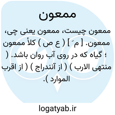 ممعون. [ م َ ] ( ع ص ) کلأ ممعون؛ گیاه که در روی آب روان باشد. ( منتهی الارب ) ( از آنندراج ) ( از اقرب الموارد ). گیاه آبدار و تر و تازه. ( ناظم الاطباء ).