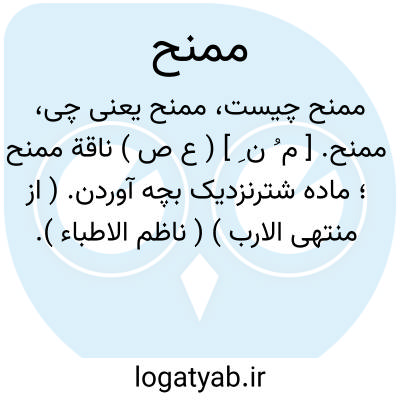 ممنح. [ م ُ ن ِ ] ( ع ص ) ناقة ممنح؛ ماده شترنزدیک بچه آوردن. ( از منتهی الارب ) ( ناظم الاطباء ).