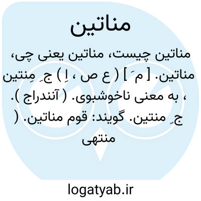 لغت نامه دهخدا مناتین. [ م َ ] ( ع ص، اِ ) ج ِ مِنتین، به معنی ناخوشبوی. ( آنندراج ). ج ِ منتین. گویند: قوم مناتین. ( منتهی الارب ). ج ِ منتین. گویند: رجال و آباط مناتین. ( از اقرب الموارد ).