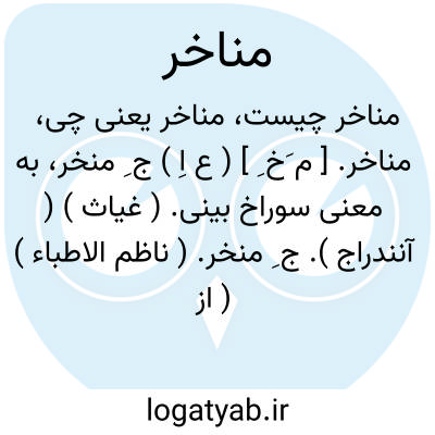مناخر. [ م َخ ِ ] ( ع اِ ) ج ِ منخر، به معنی سوراخ بینی. ( غیاث ) ( آنندراج ). ج ِ منخر. ( ناظم الاطباء ) ( از اقرب الموارد ). منخرین. ( یادداشت به خط مرحوم دهخدا ):