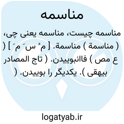 ( مناسمة ) مناسمة. [ م ُ س َ م َ ] ( ع مص ) فاانبوییدن. ( تاج المصادر بیهقی ). یکدیگر را بوییدن. ( منتهی الارب ) ( آنندراج ) ( ناظم الاطباء ). یکدیگر را بوییدن و به هم نزدیک شدن. ( از اقرب الموارد ). || سرگوشی گفتن. ( ناظم الاطباء ). با کسی در گوشی سخن گفتن. ( از اقرب الموارد ).