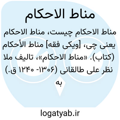 [ویکی فقه] مناط الأحکام (کتاب). «مناط الاحکام»، تالیف ملا نظر علی طالقانی (۱۳۰۶- ۱۲۴۰ ق.) به زبان عربی است و موضوع آن علم اصول می باشد. تالیف کتاب، در سال (۱۳۰۳ ق.) به پایان رسیده و در سال (۱۳۰۴ ق.) چاپ شده است. شیخ آقا بزرگ تهرانی، در جلد ۲۲ کتاب عظیم «الذریعه»، از این کتاب، به بزرگی و عظمت یاد می کند.