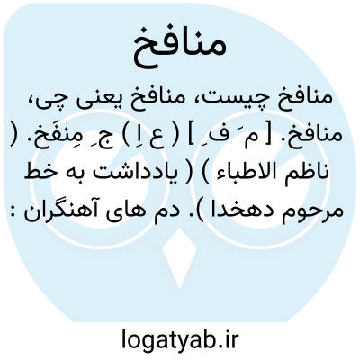 منافخ. [ م َ ف ِ ] ( ع اِ ) ج ِ مِنفَخ. ( ناظم الاطباء ) ( یادداشت به خط مرحوم دهخدا ). دم های آهنگران: آتشها افروخته... و منافخ بی منافع خرد و بزرگ را دم می داد. ( جامعالتواریخ رشیدی ).