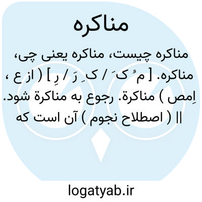 مناکره. [ م ُ ک َ / ک ِ رَ / رِ ] ( از ع، اِمص ) مناکرة. رجوع به مناکرة شود. || ( اصطلاح نجوم ) آن است که کوکب روزی اندر خانه کوکب شبی باشد و خداوند خانه اندر برج کوکب روزی یا کوکب شبی اندر خانه کوکب روزی و خداوند خانه اندر برج کوکب شبی. ( التفهیم ص 485 ). بودن کوکب لیلی در خانه کوکب نهاری یا بعکس. ( یادداشت به خط مرحوم دهخدا ).