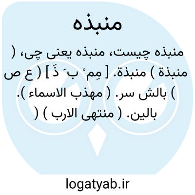 لغت نامه دهخدا ( منبذة ) منبذة. [ مِم ْ ب َ ذَ ] ( ع ص ) بالش سر. ( مهذب الاسماء ). بالین. ( منتهی الارب ) ( آنندراج ) ( ناظم الاطباء ). وساده. ج، منابذ. ( اقرب الموارد ).