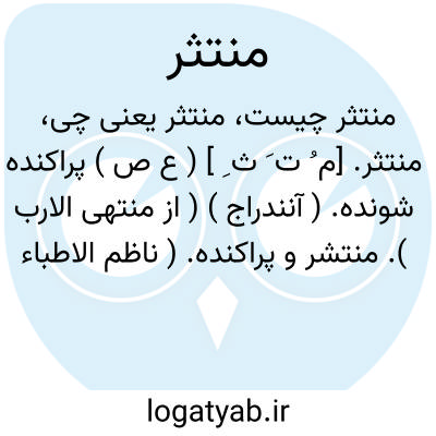 منتثر. [م ُ ت َ ث ِ ] ( ع ص ) پراکنده شونده. ( آنندراج ) ( از منتهی الارب ). منتشر و پراکنده. ( ناظم الاطباء ) ( از اقرب الموارد ). || بینی افشاننده بعدِ آب درکردن در آن. ( آنندراج ) ( از منتهی الارب ). آنکه در بینی می کشد و سپس بینی می افشاند. ( ناظم الاطباء ) ( از اقرب الموارد ). || آب در بینی کننده. ( آنندراج ) ( از منتهی الارب ). آنکه آب و جز آن در بینی می کشد. ( ناظم الاطباء ) ( از اقرب الموارد ). رجوع به انتثار شود.