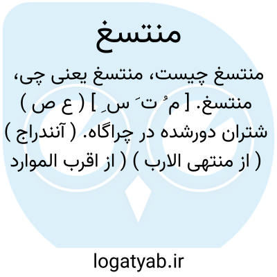 منتسغ. [ م ُ ت َ س ِ ] ( ع ص ) شتران دورشده در چراگاه. ( آنندراج ) ( از منتهی الارب ) ( از اقرب الموارد ). || شتر دست برزننده بر پنجم سپل از جهت مگس. ( آنندراج ) ( از منتهی الارب ) ( از اقرب الموارد ). رجوع به انتساغ شود.