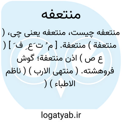 ( منتعفة ) منتعفة. [ م ُ ت َع ِ ف َ ] ( ع ص ) اذن منتعفة؛ گوش فروهشته. ( منتهی الارب ) ( ناظم الاطباء ) ( از اقرب الموارد ) ( از آنندراج ).