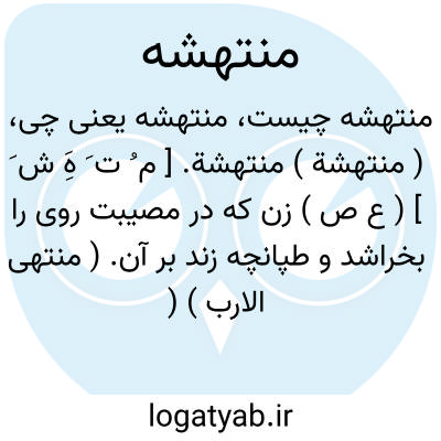 ( منتهشة ) منتهشة. [ م ُ ت َ هَِ ش َ ] ( ع ص ) زن که در مصیبت روی را بخراشد و طپانچه زند بر آن. ( منتهی الارب ) ( آنندراج ). زنی که در ماتم و سوگواری و مصیبت روی را بخراشد و تپانچه زند بر آن. ( ناظم الاطباء ) ( از اقرب الموارد ).