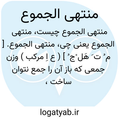 منتهی الجموع. [ م ُ ت َ هَل ْج ُ ] ( ع اِ مرکب ) وزن جمعی که باز آن را جمع نتوان ساخت، چنانکه وزن مفاعل و مفاعیل که این هر دو وزن را بار دیگر جمع کرده جمع به الجمع نمی خوانند به خلاف دیگر اوزان چنانکه اکالیب جمع اکلب و اکلب جمع کلب است. ( غیاث ) ( آنندراج ). جمع بر جمع. ( ناظم الاطباء ).