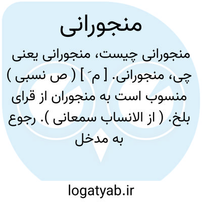 لغت نامه دهخدا منجورانی. [ م َ ] ( ص نسبی ) منسوب است به منجوران از قرای بلخ. ( از الانساب سمعانی ). رجوع به مدخل قبل شود.