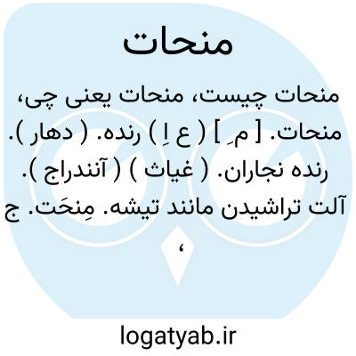 منحات. [ م ِ ] ( ع اِ ) رنده. ( دهار ). رنده نجاران. ( غیاث ) ( آنندراج ). آلت تراشیدن مانند تیشه. مِنحَت. ج، مناحیت. ( از اقرب الموارد ). || تیشه بزرگ. ( یادداشت مرحوم دهخدا ).