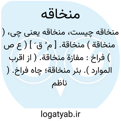 ( منخاقة ) منخاقة. [ م ُ ق َ ] ( ع ص ) فراخ: مفازة منخاقة. ( از اقرب الموارد ). بئر منخاقة؛ چاه فراخ. ( ناظم الاطباء ) ( از اقرب الموارد ).