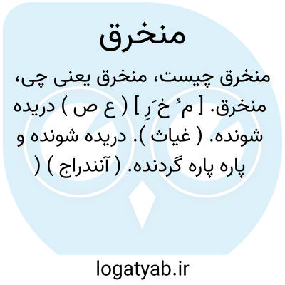 - منخرق شدن؛ شکافتن. شکافته شدن. پاره گردیدن: مشیمه مادر که قرارگاه طفل است به وقت وضع حمل ناچار منخرق شود. ( مرزبان نامه چ قزوینی ص 44 ). این موضع به سبب رفتن آن منخرق و شکافته شد. ( تاریخ قم ص 50 ).