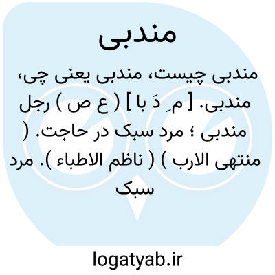 مندبی. [ م ِ دَ با ] ( ع ص ) رجل مندبی؛ مرد سبک در حاجت. ( منتهی الارب ) ( ناظم الاطباء ). مرد سبک درحاجت و به سرعت برآورنده آن. ( از اقرب الموارد ).
