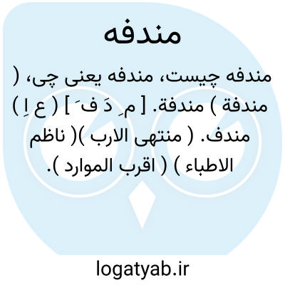 ( مندفة ) مندفة. [ م ِ دَ ف َ ] ( ع اِ ) مندف. ( منتهی الارب )( ناظم الاطباء ) ( اقرب الموارد ). رجوع به مندف شود.