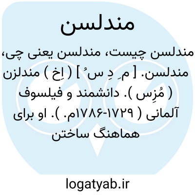 مندلسن. [ م ِ دِ س ُ ] ( اِخ )... بارتولدی ( مندلزن بارتولدی، فلیکس ). آهنگ ساز آلمانی ( 1809-1847م. ) و فرزند پسر مندلسن و مؤسس کنسرواتور لایپزیک و بوجودآورنده آثار فراوانی در موسیقی است، از آن جمله: سنفنی ایتالیائی، رؤیاهای یک شب تابستان، و کنسرتو برای پیانو و... ( از لاروس ).