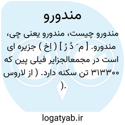 لغت نامه دهخدا مندورو. [ م َ دُ رُ ] ( اِخ ) جزیره ای است در مجمعالجزایر فیلی پین که 313300 تن سکنه دارد. ( از لاروس ).