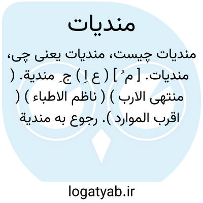 مندیات. [ م ُ ] ( ع اِ ) ج ِ مندیة. ( منتهی الارب ) ( ناظم الاطباء ) ( اقرب الموارد ). رجوع به مندیة شود. || رسواییها و بی آبروییها و کارهای زشت. ( ناظم الاطباء ) ( از اقرب الموارد ).