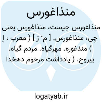 منذاغورس. [ م َ رَ ] ( معرب، اِ ) منذغوره. مهرگیاه. مردم گیاه. یبروح. ( یادداشت مرحوم دهخدا ). رجوع به منداغورس و یبروح شود.