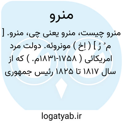 منرو. [ م ُ رُ ] ( اِخ ) مونروئه. دولت مرد امریکائی ( 1758-1831م. ) که از سال 1817 تا 1825 رئیس جمهوری ممالک متحده امریکا بود و اشتهارش بر این است که در سال 1823 م. نظریه خود را که قطع مداخله در امور امریکائیان بوسیله اروپائیان و امریکائیان در امور اروپائیان بود اعلام کرد که به دکترین منرو شهرت یافت. ( از لاروس ).