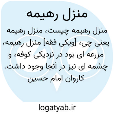 [ویکی فقه] منزل رهیمه، مزرعه ای بود در نزدیکی کوفه، و چشمه ای نیز در آنجا وجود داشت. کاروان امام حسین (علیه السلام) در این منزل فرود آمد.
