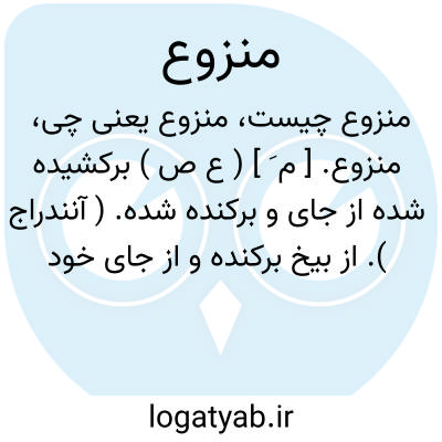 منزوع. [ م َ ] ( ع ص ) برکشیده شده از جای و برکنده شده. ( آنندراج ). از بیخ برکنده و از جای خود برکشیده. برکنده شده. غارت شده. ( ناظم الاطباء ).
