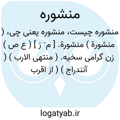 ( منشورة ) منشورة. [ م َ رَ ] ( ع ص ) زن گرامی سخیه. ( منتهی الارب ) ( آنندراج ) ( از اقرب الموارد ). زن گرامی با همت و سخاوت. ( ناظم الاطباء ).
