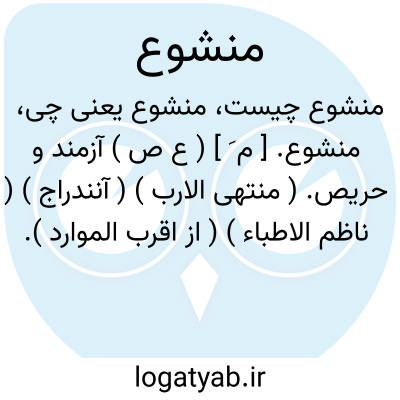 لغت نامه دهخدا منشوع. [ م َ ] ( ع ص ) آزمند و حریص. ( منتهی الارب ) ( آنندراج ) ( ناظم الاطباء ) ( از اقرب الموارد ).