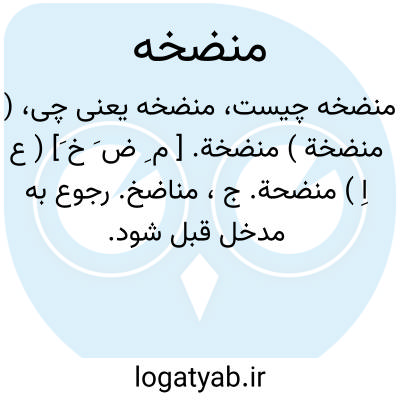 ( منضخة ) منضخة. [ م ِ ض َ خ َ] ( ع اِ ) منضحة. ج، مناضخ. رجوع به مدخل قبل شود.