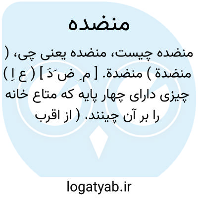 ( منضدة ) منضدة. [ م ِ ض َدَ ] ( ع اِ ) چیزی دارای چهار پایه که متاع خانه را بر آن چینند. ( از اقرب الموارد ) ( از المنجد ). میز.
