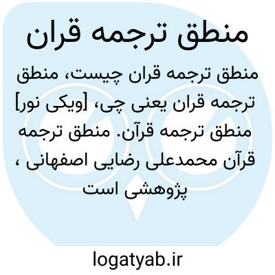 [ویکی نور] منطق ترجمه قرآن. منطق ترجمه قرآن محمدعلی رضایی اصفهانی، پژوهشی است پیرامون بررسی و تبیین مبانی، قواعد، روش ها، سبک ها، آسیب شناسی ترجمه و شرایط مترجم.