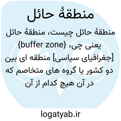{buffer zone} [جغرافیای سیاسی] منطقه ای بین دو کشور یا گروه های متخاصم که در آن هیچ کدام از آن کشورها یا گروه ها حضور نظامی نداشته باشند