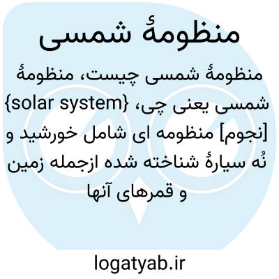 {solar system} [نجوم] منظومه ای شامل خورشید و نُه سیارۀ شناخته شده ازجمله زمین و قمرهای آنها و هزاران سیارک و دنباله دار که همه به دور خورشید می گردند