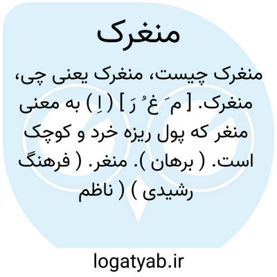 منغرک. [ م َ غ ُ رَ ] ( اِ ) به معنی منغر که پول ریزه خرد و کوچک است. ( برهان ). منغر. ( فرهنگ رشیدی ) ( ناظم الاطباء ). رجوع به مَنغُر شود. منغرک. [ م ُ غ ُ رَ ] ( اِ ) قدح بزرگ شرابخواری باشد. ( برهان ). منغر. ( فرهنگ رشیدی ) ( ناظم الاطباء ). رجوع به مُنغُر شود.