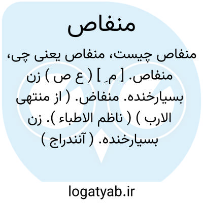 منفاص. [ م ِ ] ( ع ص ) زن بسیارخنده. منفاض. ( از منتهی الارب ) ( ناظم الاطباء ). زن بسیارخنده. ( آنندراج ) ( از اقرب الموارد ). || زن کمیزکننده بر بستر. ( منتهی الارب ) ( ناظم الاطباء ) ( آنندراج ). زن بول کننده در بستر. ( از اقرب الموارد ).