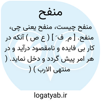 منفح. [ م ِ ف َ ] ( ع ص ) آنکه در کار بی فایده و نامقصود درآید و در هر امر پیش گردد و دخل نماید. ( منتهی الارب ) ( آنندراج ). آنکه کار بی فایده کند و آنکه در هر چیزی که پیش آید دخالت کند. ( ناظم الاطباء ) ( از اقرب الموارد ).