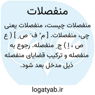 لغت نامه دهخدا منفصلات. [ م ُ ف َ ص ِ ] ( ع ص، اِ ) ج ِ منفصله. رجوع به منفصله و ترکیب قضایای منفصله ذیل مدخل بعد شود.