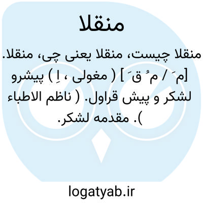 منقلا. [م َ / م ُ ق َ ] ( مغولی، اِ ) پیشرو لشکر و پیش قراول. ( ناظم الاطباء ). مقدمه لشکر. مقدمةالجیش. طلایه. منغلا.منغلای. مانگلای: نوروز با چهار هزار سوار منقلا می رفت و صدرالدین زنجانی ملازم او بود. ( تاریخ غازانی چ کارل یان ص 89 ). رجوع به منغلای و منقلای شود. || وکیل و گماشته و رسول. ( ناظم الاطباء ).