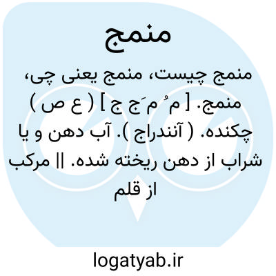 منمج. [ م ُ م َج ج ] ( ع ص ) چکنده. ( آنندراج ). آب دهن و یا شراب از دهن ریخته شده. || مرکب از قلم چکیده. ( ناظم الاطباء ).