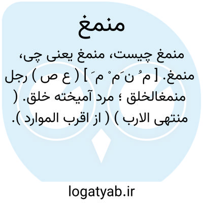 لغت نامه دهخدا منمغ. [ م ُ ن َم ْ م َ ] ( ع ص ) رجل منمغالخلق؛ مرد آمیخته خلق. ( منتهی الارب ) ( از اقرب الموارد ). آمیخته. || همنشین. مصاحب. همدم. ( ناظم الاطباء ).