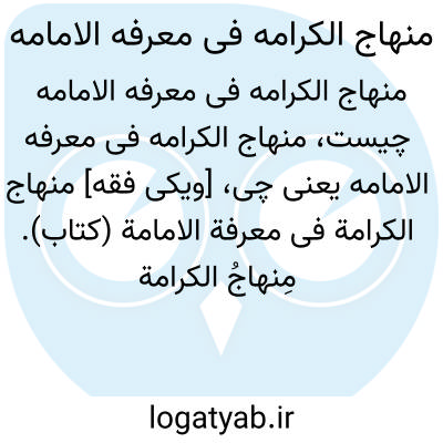 [ویکی شیعه] منهاج الکرامه فی معرفه الامامه (کتاب). مِنْهاجُ الکَرامَة فی مَعْرِفَة الإمامَة کتابی کلامی، در اثبات حقانیت مذهب شیعه و امامت علی بن ابی طالب (ع) و فرزندانش، اثر علامه حلی (متوفای ۷۲۶ق.).