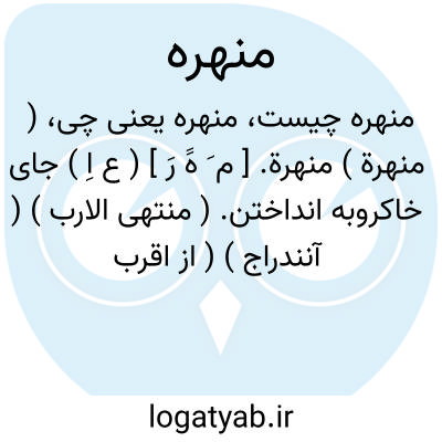 ( منهرة ) منهرة. [ م َ هََ رَ ] ( ع اِ ) جای خاکروبه انداختن. ( منتهی الارب ) ( آنندراج ) ( از اقرب الموارد ). جایی که در آن خاکروبه می ریزند. ( ناظم الاطباء ). خاکدان. خاکروبه دان. ج، مناهر. ( یادداشت مرحوم دهخدا ). آنجا که خاک بیفکنند از در سرای. ( مهذب الأسماء ).