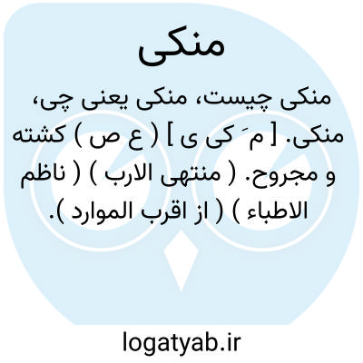 منکی. [ م َ کی ی ] ( ع ص ) کشته و مجروح. ( منتهی الارب ) ( ناظم الاطباء ) ( از اقرب الموارد ).
