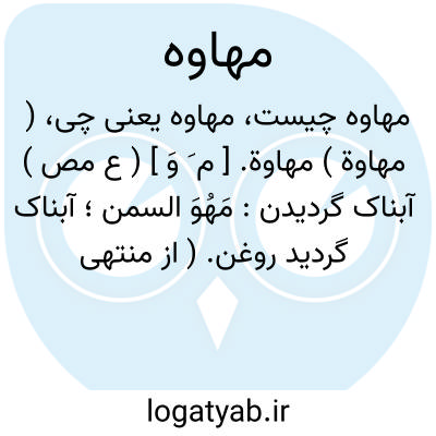 ( مهاوة ) مهاوة. [ م َ وَ ] ( ع مص ) آبناک گردیدن: مَهُوَ السمن؛ آبناک گردید روغن. ( از منتهی الارب ) ( از ناظم الاطباء ). آبناک گردیدن شیر یا مسکه. ( آنندراج ). بسیارآب و تنک شدن شیر. ( تاج المصادر بیهقی ).