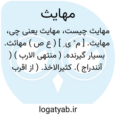 مهایث. [ م ُ ی ِ ] ( ع ص ) مهائث. بسیار گیرنده. ( منتهی الارب ) ( آنندراج ). کثیرالاخذ. ( از اقرب الموارد ): رجل مهایث؛ مرد بسیار گیرنده. || فزونی نماینده. ( ناظم الاطباء ).