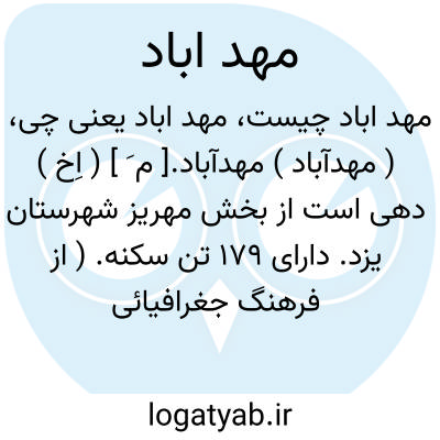 ( مهدآباد ) مهدآباد.[ م َ ] ( اِخ ) دهی است از بخش مهریز شهرستان یزد. دارای 179 تن سکنه. ( از فرهنگ جغرافیائی ایران ج 10 ).